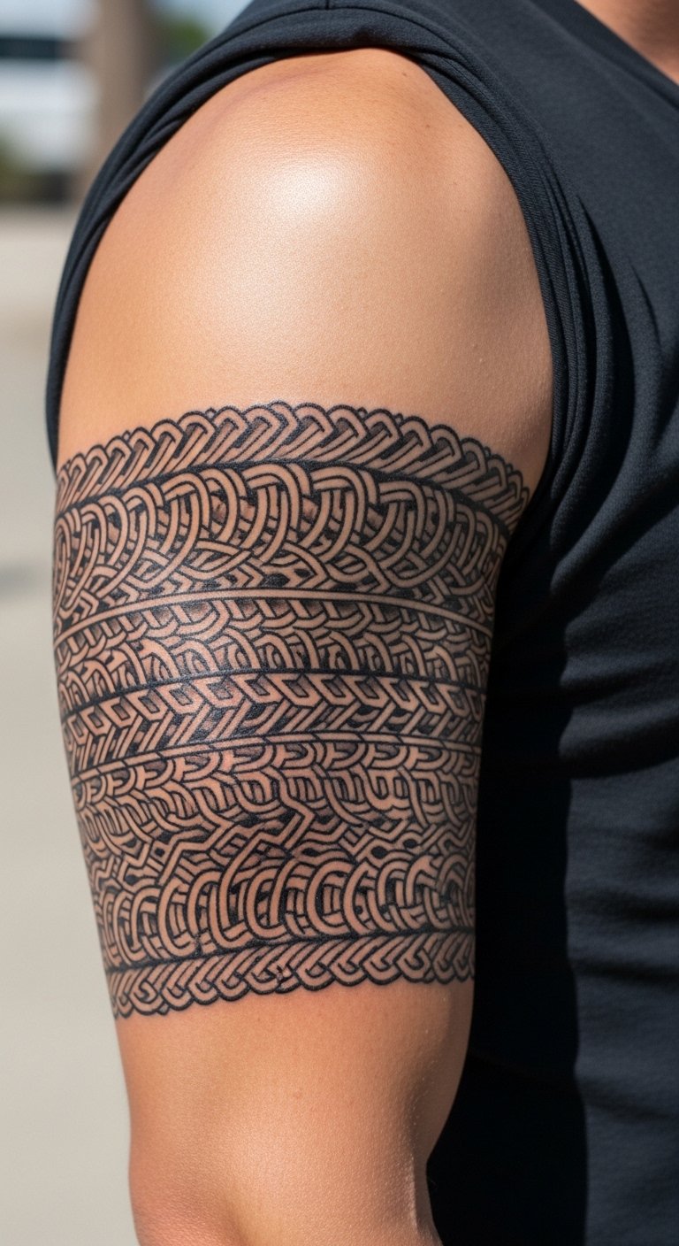 An armband wraps your upper arm in one go. This design circles with patterns of your choice. Draw bands from rope or string at home. Online editors make customization simple. Plan for $100–180 total. Use even lines to cut costs. Preview with tape measures. Keep it under sleeves for jobs. Do in one or two sits. Protect with affordable lotions. This style holds strong and looks polished.