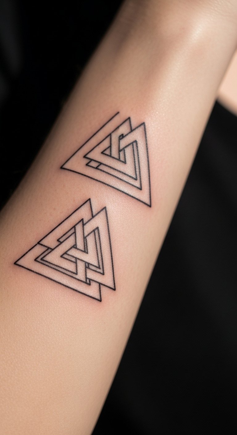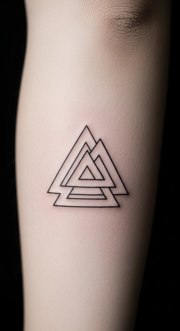 Place Valknut on your forearm. It serves as a daily prompt. Use a ruler for straight lines in drawings. Trace on paper first. Temporary tattoo pens work for $1. Draw it yourself at home. Put it where you see it often. Forearms are easy to show or hide. Look for beginner artists with lower rates. Focus on simple shapes. Let it guide your day.
