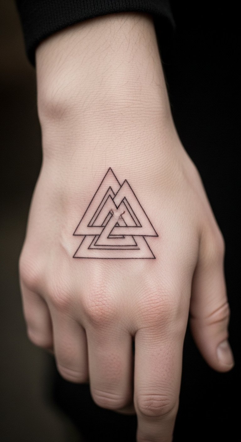 Finger Valknut stays discreet. Tiny triangles fit. Finger rings trace first. At home quick. Finger tattoos use simple tools. Place on side for hide. Quick and cheap options. Wear it quietly.