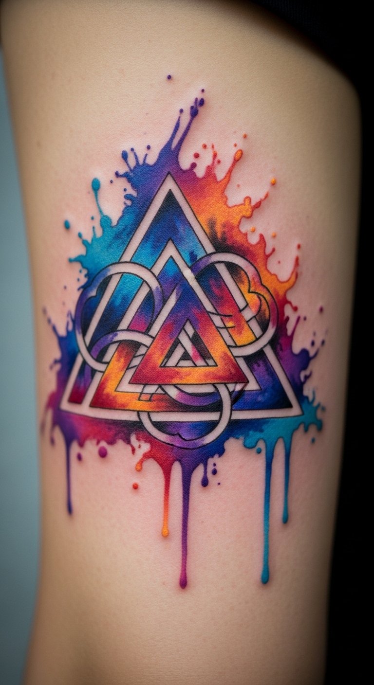 Watercolor Valknut brings art. Blend colors softly. Watercolors sketch ideas. At home fun. Watercolor tattoos test with markers. Put on arm creatively. Artists use less ink for this. Make it your palette.