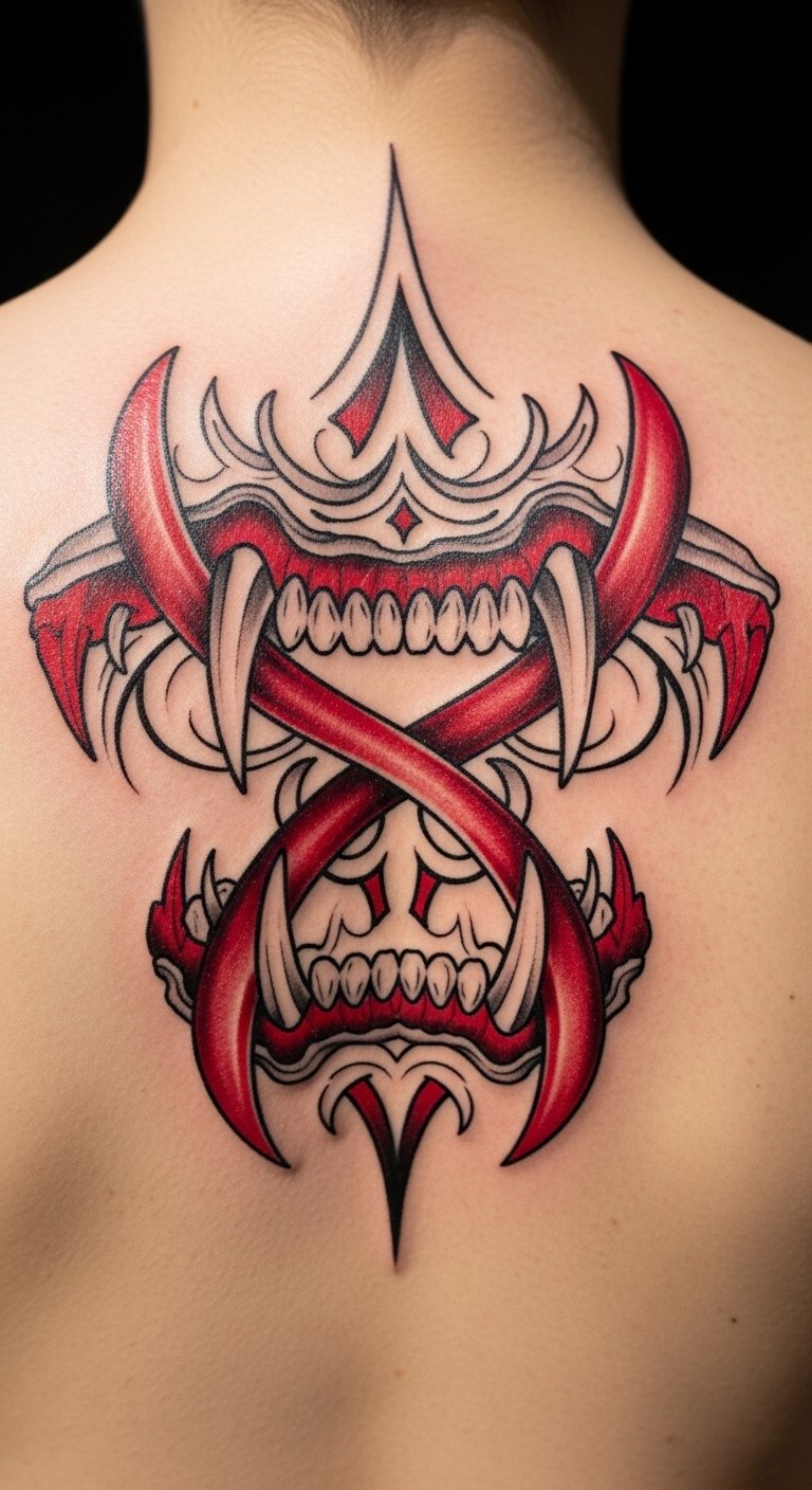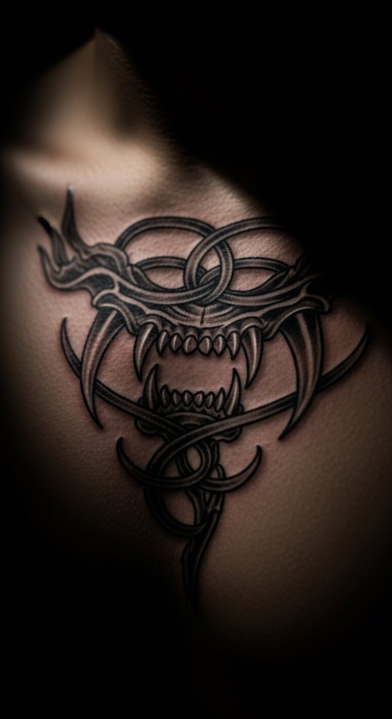 Capture forever vibes. Symbols like loops with fangs represent endless life. Draw loops freehand. Use string to map designs on your body. Cost nothing. Put it on your chest for impact. Temporary options abound online. Add fangs for edge. This keeps costs low while building meaning.