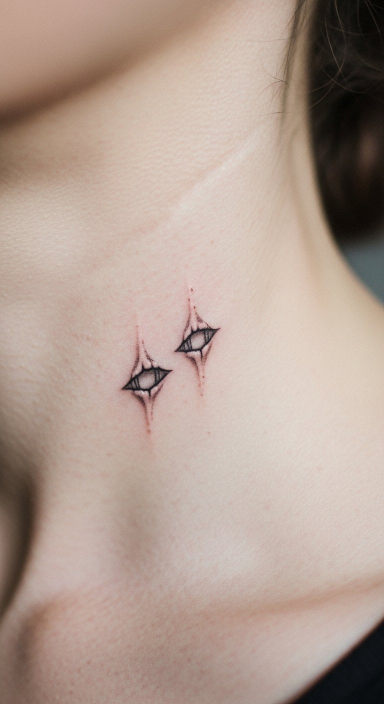 Less is more with a bite mark. Two tiny dots with light shading mimic a real bite. Subtle and stylish. Sketch it with a pencil on your skin first. Free and easy. Buy stick-on versions from dollar stores for quick tests. Position it on your collarbone for versatility. Add a small drop for realism. This design fits any budget, starting at $20 for pros. Practice with makeup pencils at home. Keep it fun by experimenting with angles. Actions like this help you decide fast.