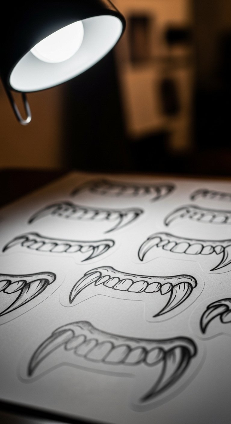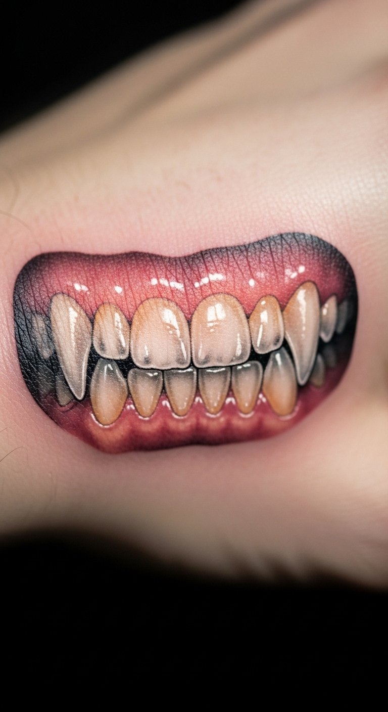 Make it look real. Realistic teeth pop with fine details. Focus on the gums and points. Practice shading with colored pencils at home. Cheap and effective. Try temporary versions on your hand. Spot like your finger keeps it discreet. Add gloss with clear nail polish for a fake 3D effect. Artists charge by detail, so start small. This method lets you test ideas without commitment.