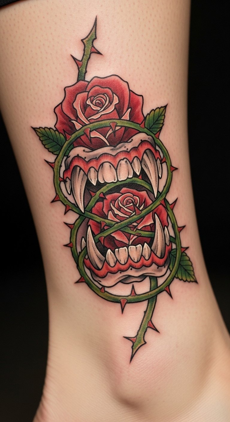 Combine beauty and bite. A fang with a rose adds romance to the dark theme. Sketch hybrids on paper first. Use rose petals for inspiration. Affordable flower stencils online help with designs. Place it on your ankle for a feminine touch. Temporary tattoos let you preview. Mix colors with markers. Keep it fresh by varying the rose size. Simple planning makes it personal.