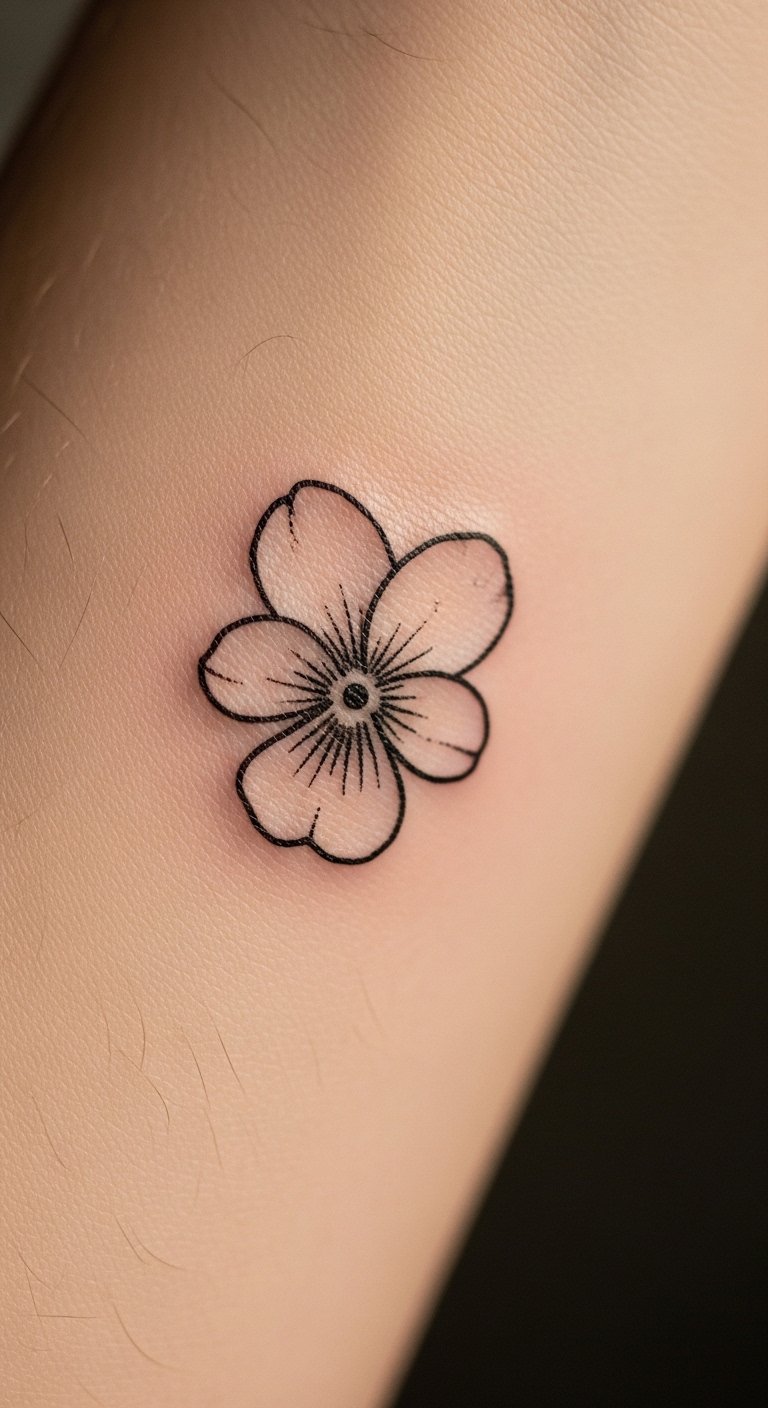 A minimalist violet outline keeps things simple and meaningful. Picture a small flower on your wrist, just a few clean lines that say a lot. This style hides easily under sleeves or watches. Start by sketching ideas at home with a pen and paper—free and fun. For a budget approach, use phone apps to trace designs before hitting the tattoo shop. Pick a local artist who does fine lines; sessions often cost less than $100. Add your twist, like a tiny stem for personal flair. Keep it small to cut time and pain. This tattoo works for daily wear, blending into your routine without fuss.