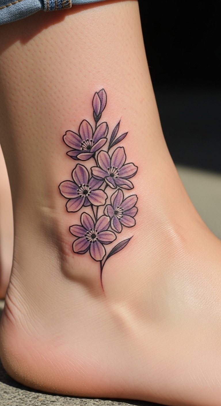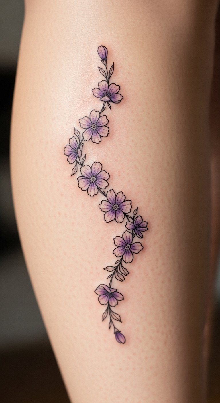 Go for a dainty violet cluster on your ankle for a touch of whimsy. Imagine a few small flowers peeking out from your shoe line, easy to show or cover. This spot adds a playful nod to new beginnings. Draw inspiration from nature photos online and try doodling your own version on paper. Save money by choosing a simple design that takes less ink—many shops offer deals under $150. Place it where it won’t rub against clothes for quick healing. Mix in a leaf or two for extra meaning, like growth. Wear it as a daily reminder of quiet strength, perfect for summer outings.