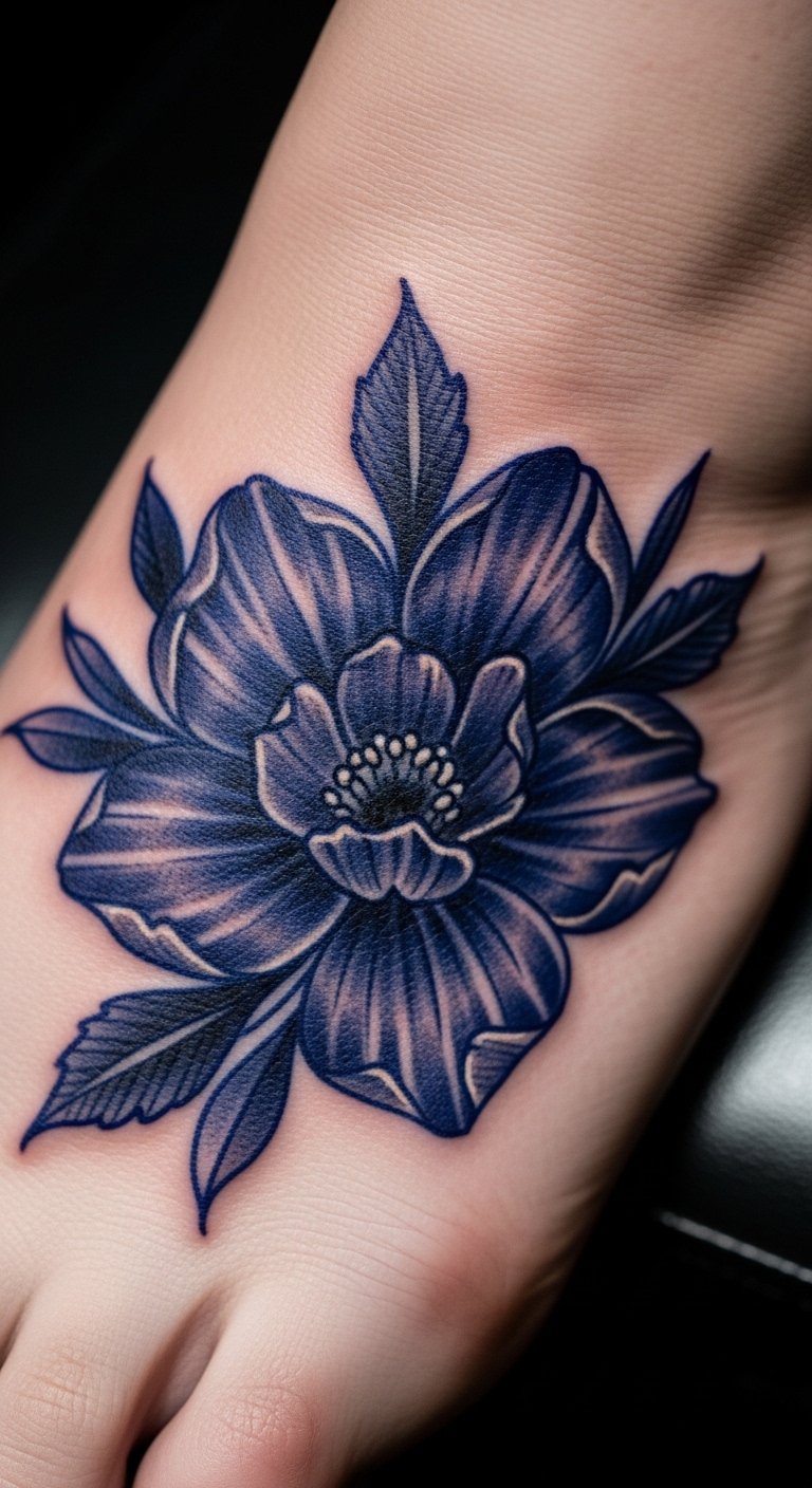 An indigo hued violet on your foot adds intense color. Picture deep blues that wrap your arch, evoking hope. Test hues with colored markers at home. Look for foot tattoos starting at $100. Put it on top for less pain. Customize shades to match your preferences. This design brightens your step, great for outdoor adventures. Keep it protected initially.