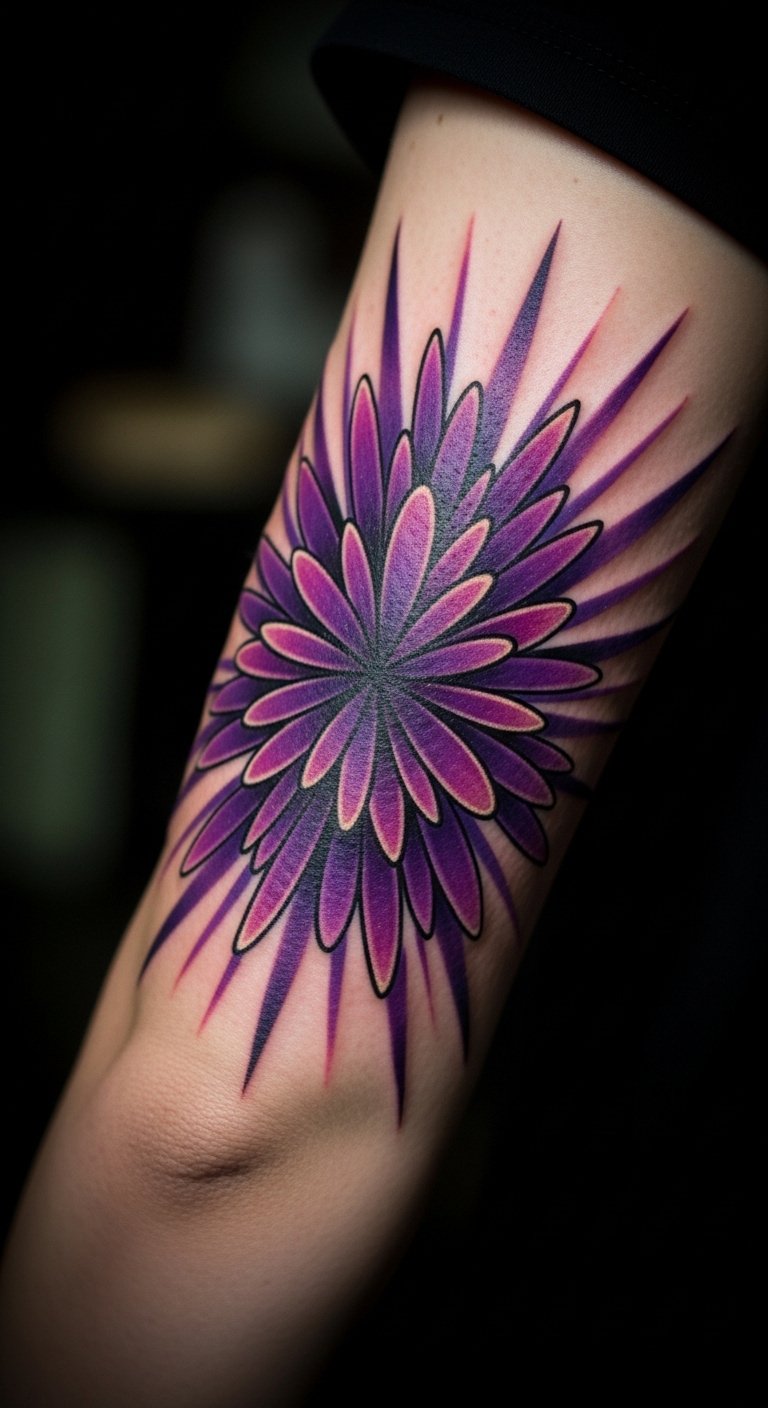 A hope violet burst on your elbow radiates positivity. Picture petals exploding outward, marking new paths. Sketch bursts with creative tools. Find elbow tattoos for quick visits, around $120. Position it for joint movement. Add rays for extra punch. This tattoo motivates your actions, great for daily reminders. Keep it bold.