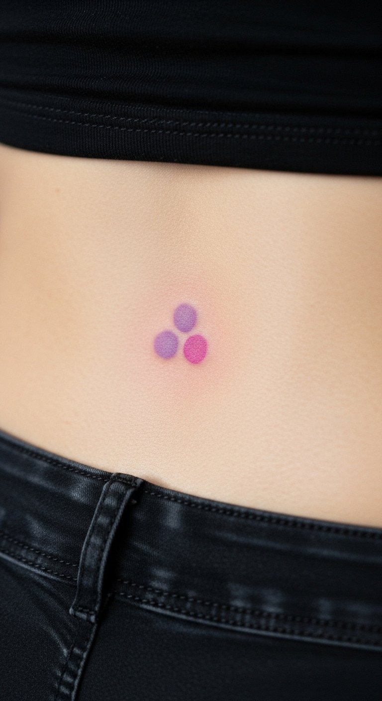 A subtle violet trio on your lower back creates harmony. See three flowers in a row, for balanced vibes. Draw trios at home for fun. Opt for back art starting at $150. Place it low for concealment. Keep them identical for symmetry. This design supports your core, ideal for personal space. Cover as needed.