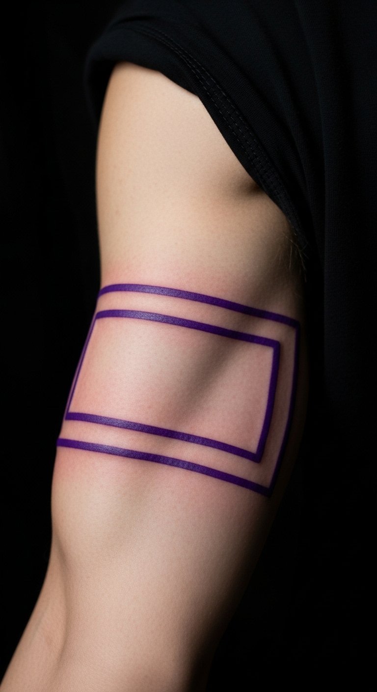 A bold violet outline band on your bicep shows strength. Imagine a thick ring of flowers, standing for loyalty. Trace bands with markers. Choose bicep designs for sessions under $180. Wrap it around for a firm hold. Personalize the width for fit. This tattoo flexes with you, perfect for fitness fans. Protect it during exercises.