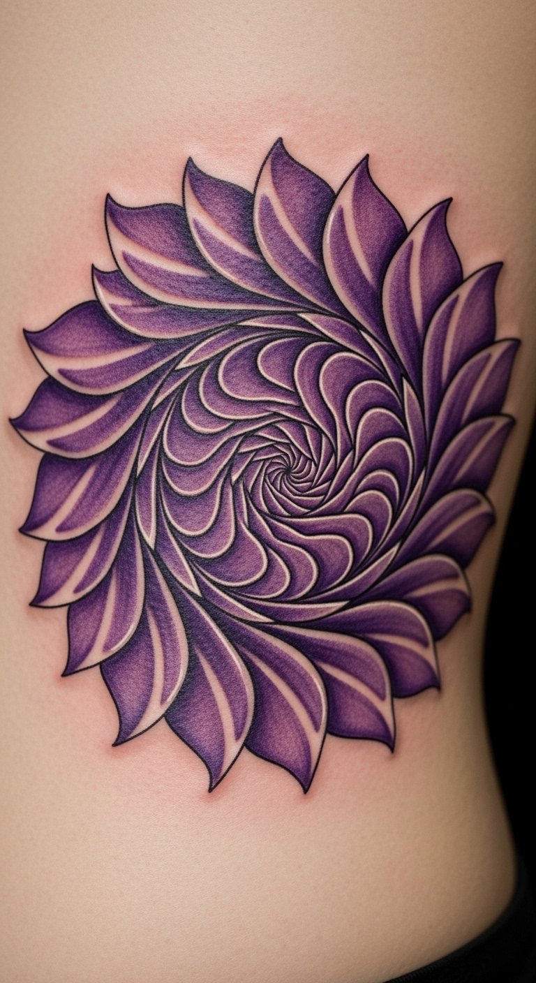 A renewal violet spiral on your side spirals forward. Envision twisting blooms that represent change. Sketch spirals with paper tools. Go for side art around $160. Place it along your ribs for flow. Customize the twists for your path. This tattoo adapts to your body, great for evolution. Heal with care.