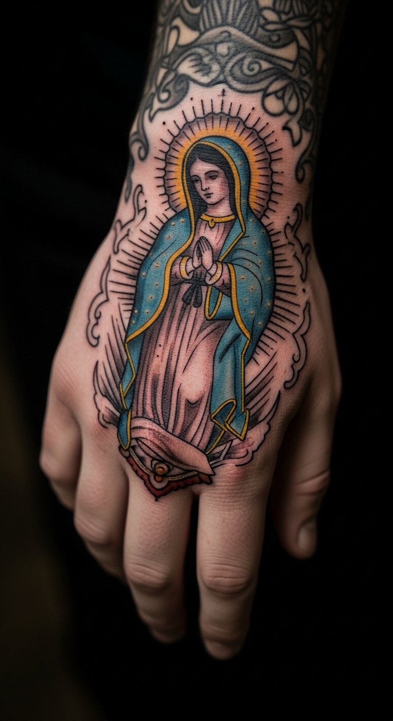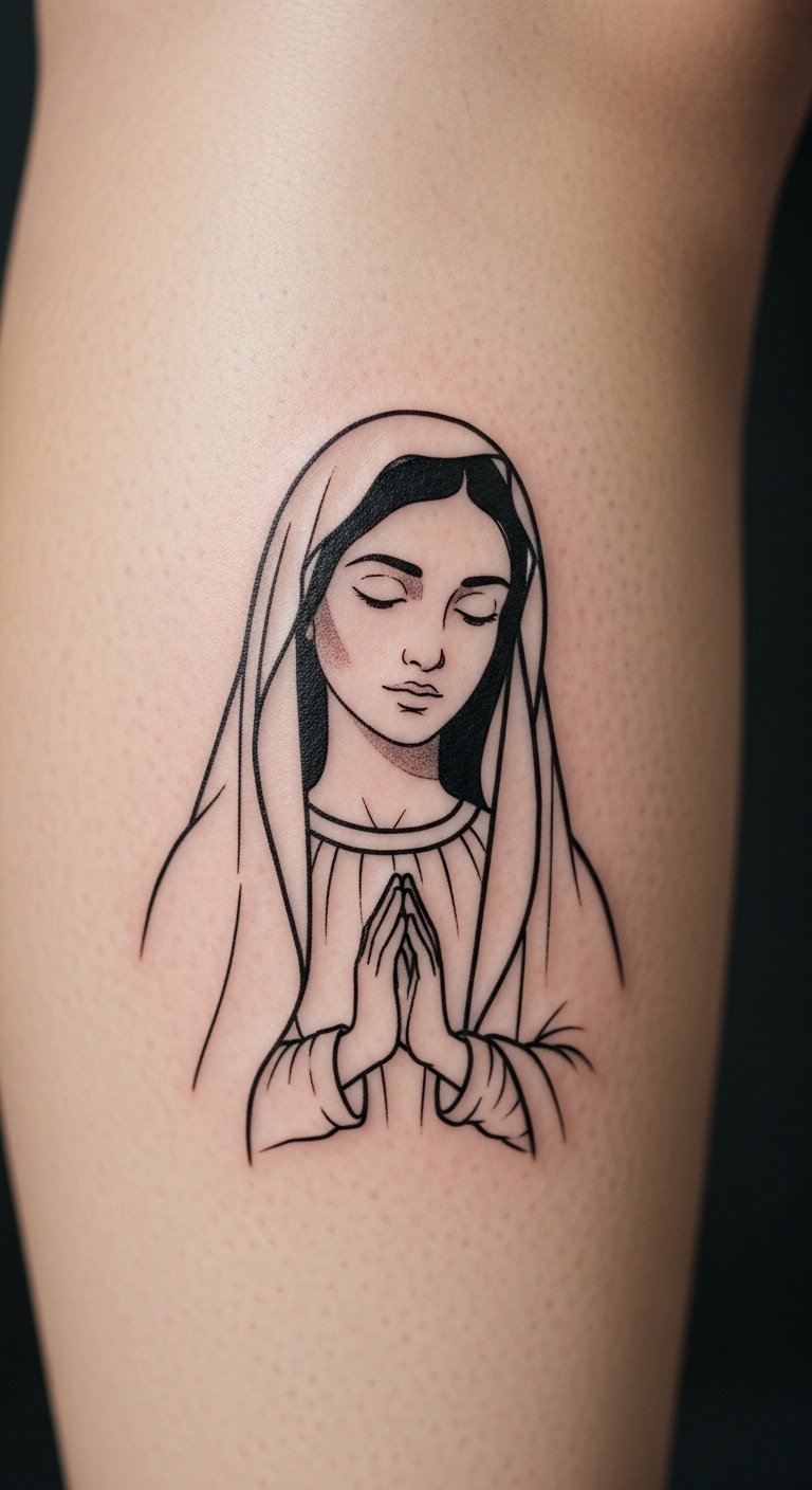 Small tattoos fit busy lives. Picture a tiny Mary on your wrist for quick inspiration. It’s easy to hide or show. Use a phone app to plan for free. Sketch with a fine-tip pen at home. This spot offers flexibility. Bold details keep it meaningful. Opt for basic ink to cut costs. This choice lets you carry faith lightly.