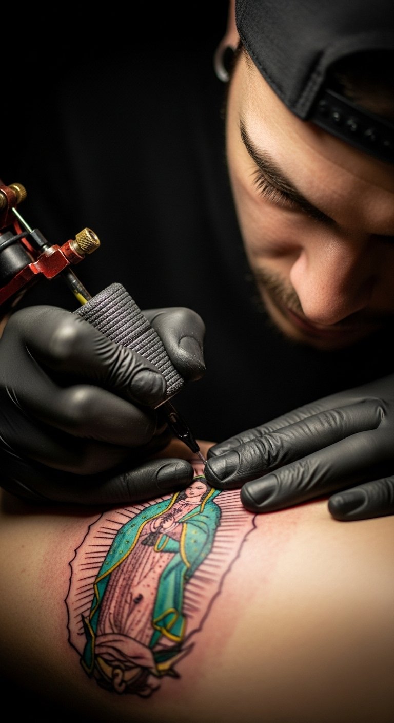 Tattoos touch the soul. Imagine Mary’s image bringing daily peace. It changes how you feel. Journal your thoughts first. Share stories online. Reflect often. Bold emotions grow. This art fosters growth.