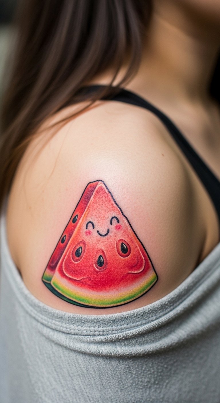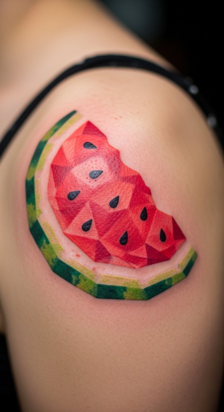 Go big with a sleeve if you want impact. A full-color watermelon brings energy to your arm. Choose reds and greens that pop. Find an artist online for $200 to $500. Sketch ideas at home using colored pencils. Mix in other fruits for variety. Place it where you can show it off. Wear short sleeves to display it. This design lasts with proper care. Clean it daily with gentle soap. Add sunscreen to protect colors from fading. It makes a statement about your lively spirit.