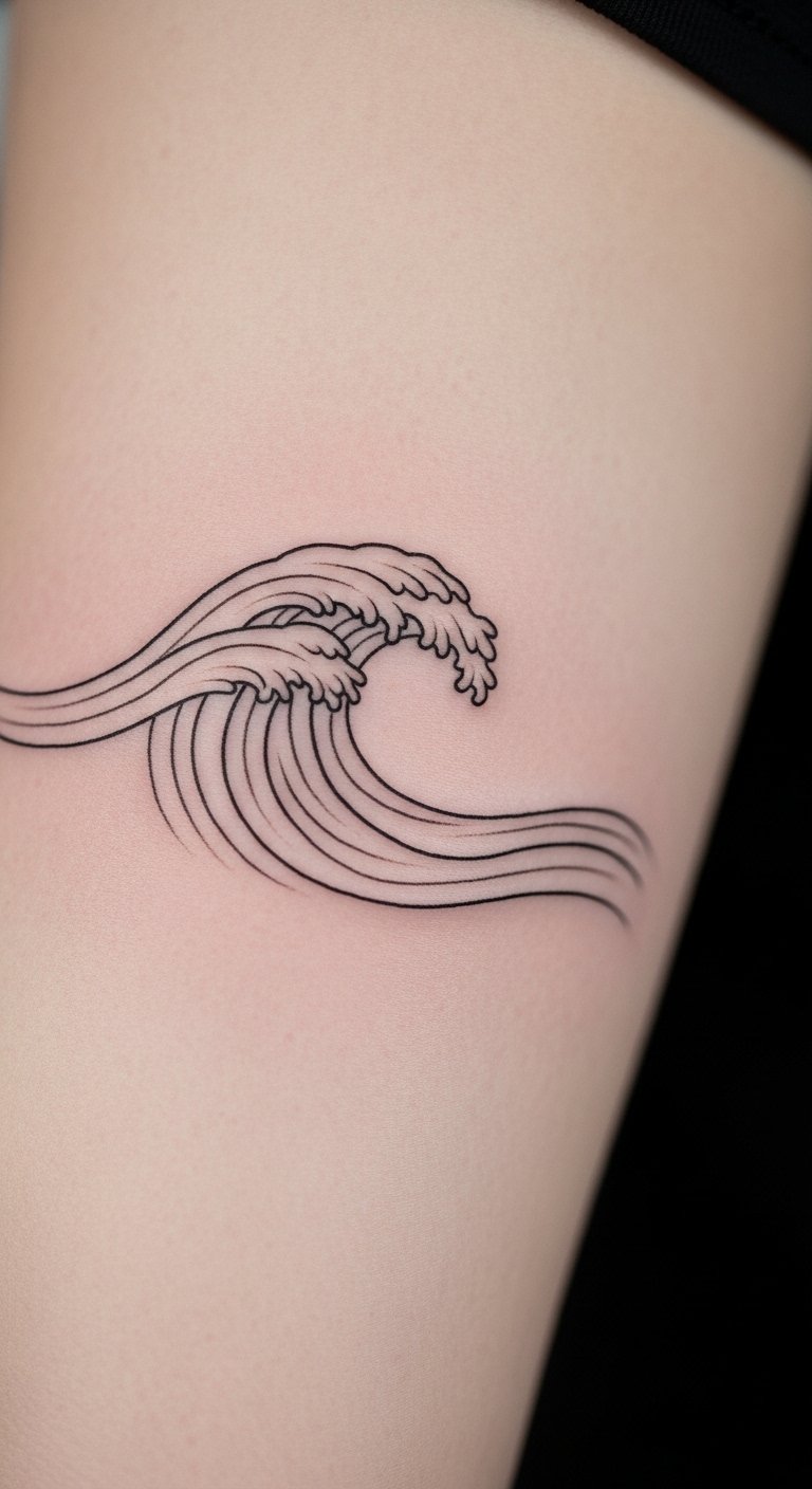 Fine line wave tattoos use super thin lines for a subtle effect. Think of them as elegant sketches on your skin. They work great for first tries because they heal fast and look neat. Start with a simple design on your wrist. Save money by sketching ideas on paper first. Try drawing waves with a fine pen to see what fits. Bold these words: fine line waves. Pick an artist who does detailed work. This style fits busy lives with its low-maintenance charm. Add personal touches like a small symbol in the wave. Get one for under $100 at local shops. Practice with temporary tattoos from online stores. Keep it real by checking artist portfolios online.