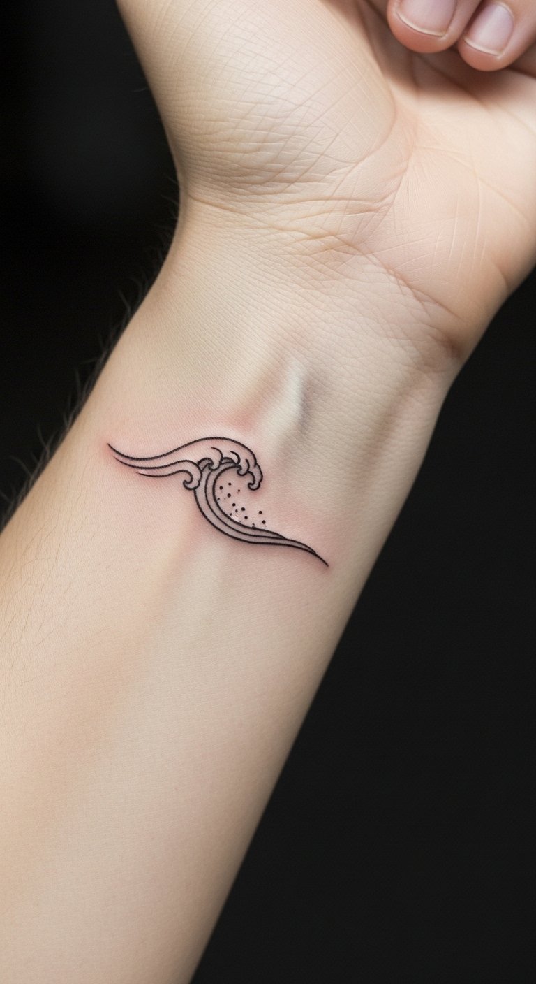 Wrist wave tattoos stay hidden yet meaningful. They fit under watches or sleeves. Bold these words: wrist waves. Measure your wrist and sketch fits. This DIY is quick. Local spots often have deals for small tattoos. These designs add quiet style. Practice with wristbands for placement.