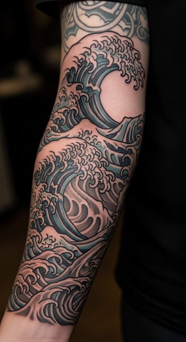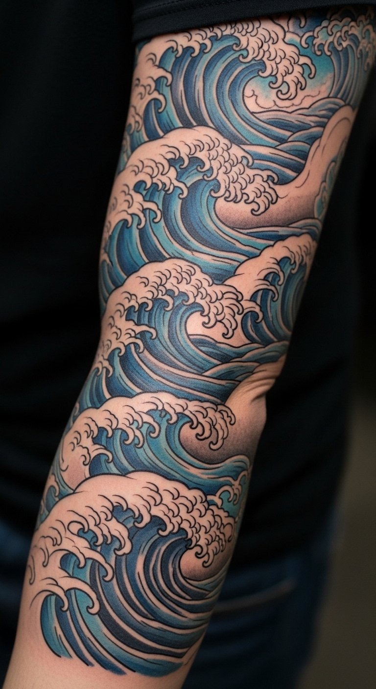 Wave tattoo sleeves build over time with added pieces. They create a full story. Bold these words: wave sleeves. Plan your collection on paper first. This keeps expenses manageable. Get one piece at a time from the same artist. These tattoos evolve with you. Use photos to track progress.
