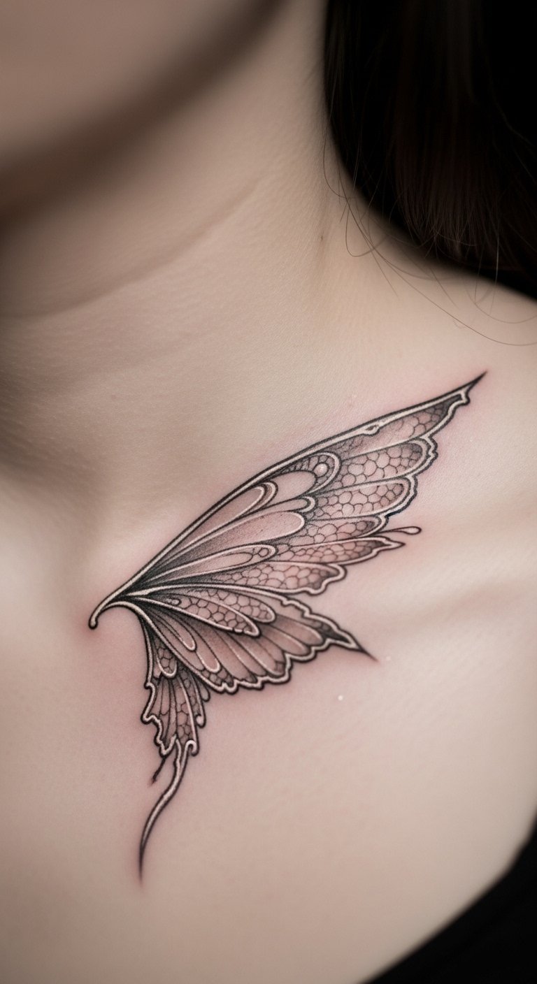 Choose lace-like wings for a magical feel. Set on your collarbone. Find fairy tales online. Doodle on notepads. No expense. Attend local markets for artists. They offer bargains. Use glitter stickers as trials. Easy to remove. Incorporate a sparkle element. Pick subtle locations. This design adds whimsy effortlessly.