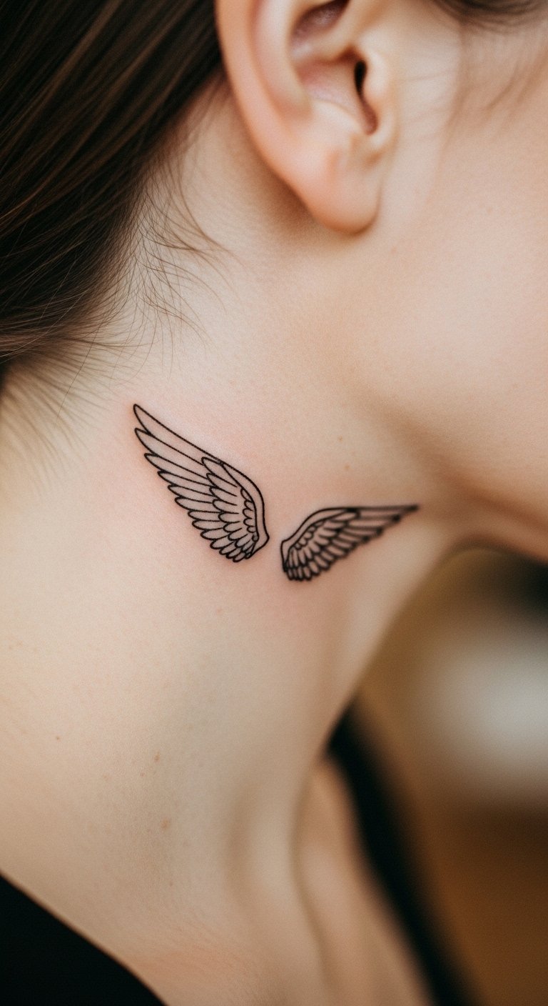 Pick faint lines for subtlety. Neck hides well. Spot bird flights. Sketch small. Quick. Check hidden spots at shops. Low key. Use neck bands for trial. Easy. Include a fade. Select nape areas. This design whispers quietly.