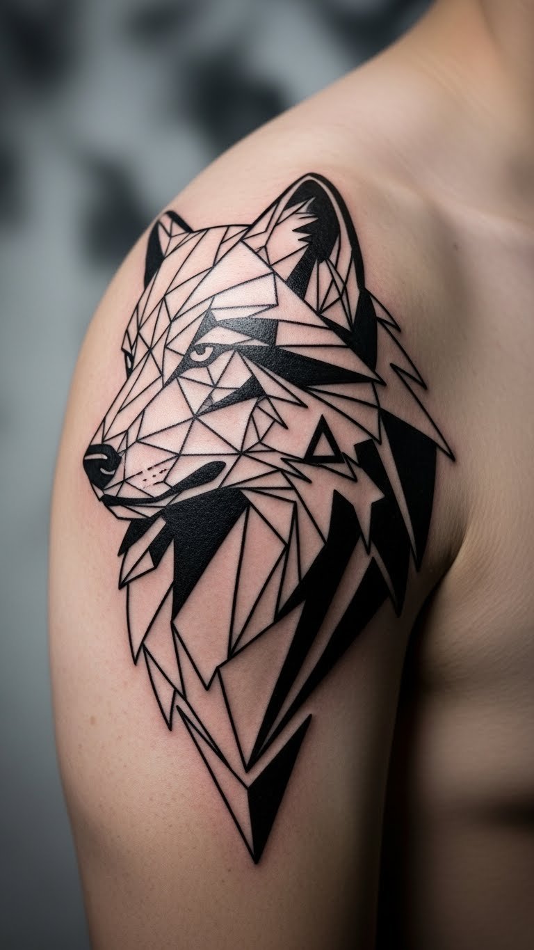 Geometric Wolf Tattoo for Sharp Symmetry