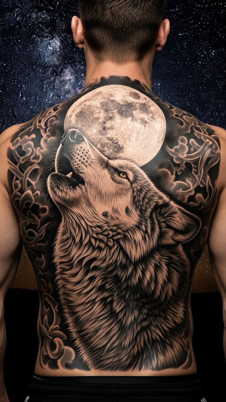 Back Wolf Tattoo for Grand Scale