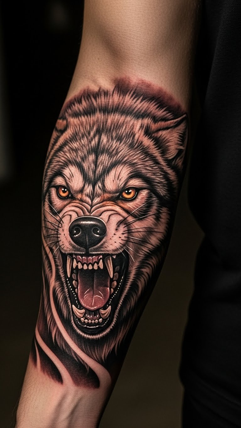 Realistic Snarling Wolf Tattoo for Raw Power