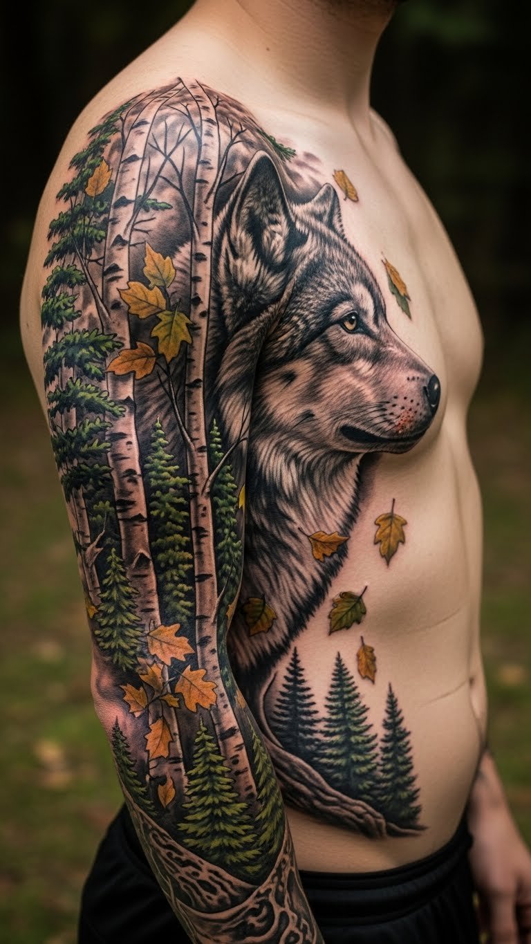 Wolf with Forest Elements Tattoo for Nature’s Call