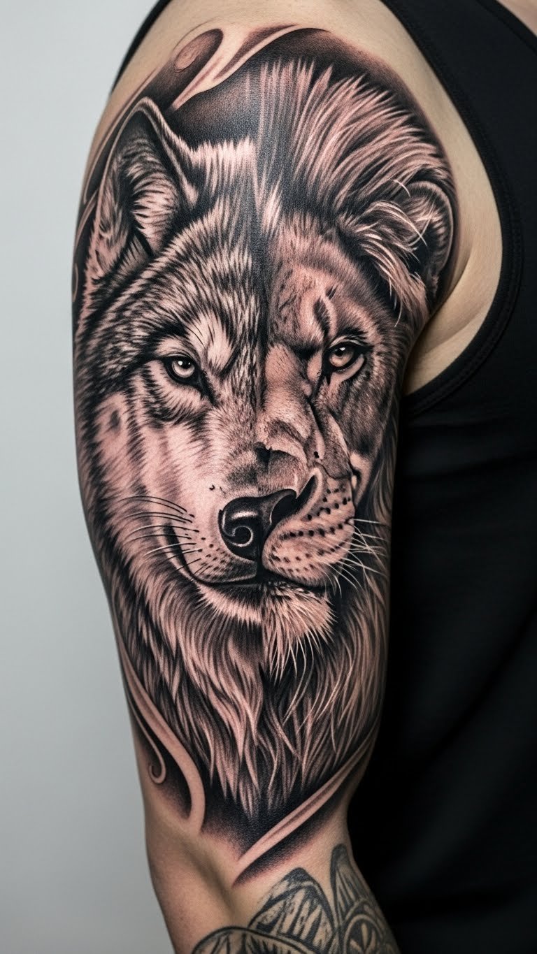 Blend a wolf with another animal for a one-of-a-kind design that tells a story. It’s original and bold. Mix drawings. Place on arm. Deals at $140. Use animal refs. Evokes new tales. Keep balanced. Tie to interests. Select creatively. Care as needed.