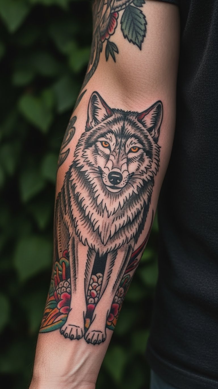 Neo-Traditional Wolf Tattoo for Updated Classics