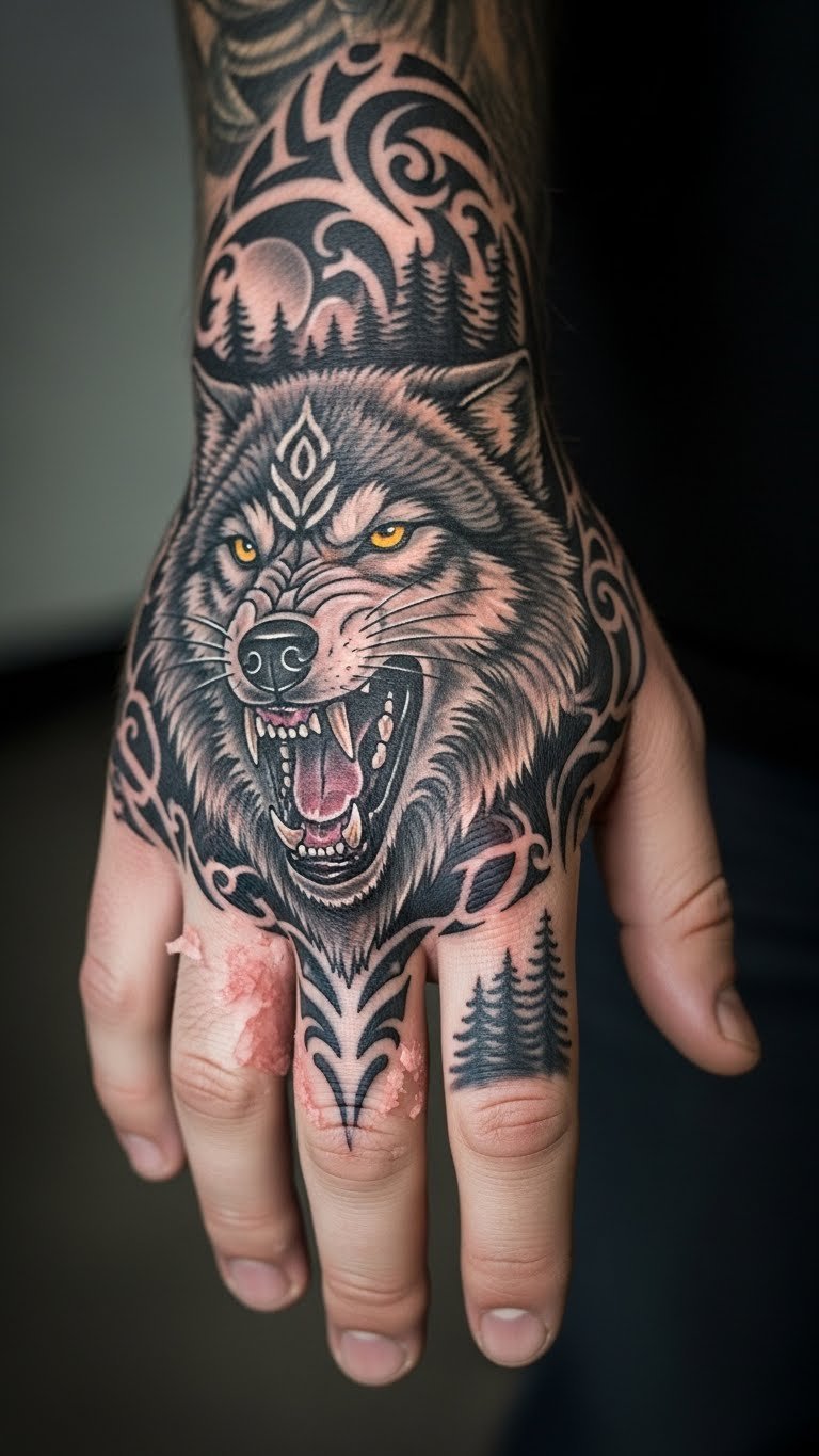 Cover your arm with a wolf sleeve for a complete fierce narrative. It’s an all-in statement. Break it into sections at home. Put on arm. Sessions at $300 but phased. Use apps for layout. Represents total resolve. Build over time. Tie to goals. Phase payments. Protect daily.