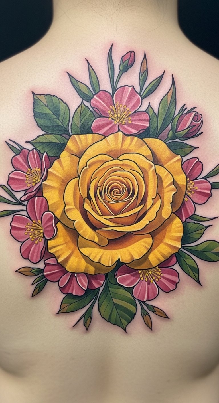 Combine yellow roses with other blooms for a garden feel. Spot it on your back for a larger canvas. Check budget shops—options start at $60. Sketch combinations on paper for free. Add daisies for variety. It’s versatile and eye-catching. Use apps to mix designs quickly. This one grows with you. Try it for floral lovers.