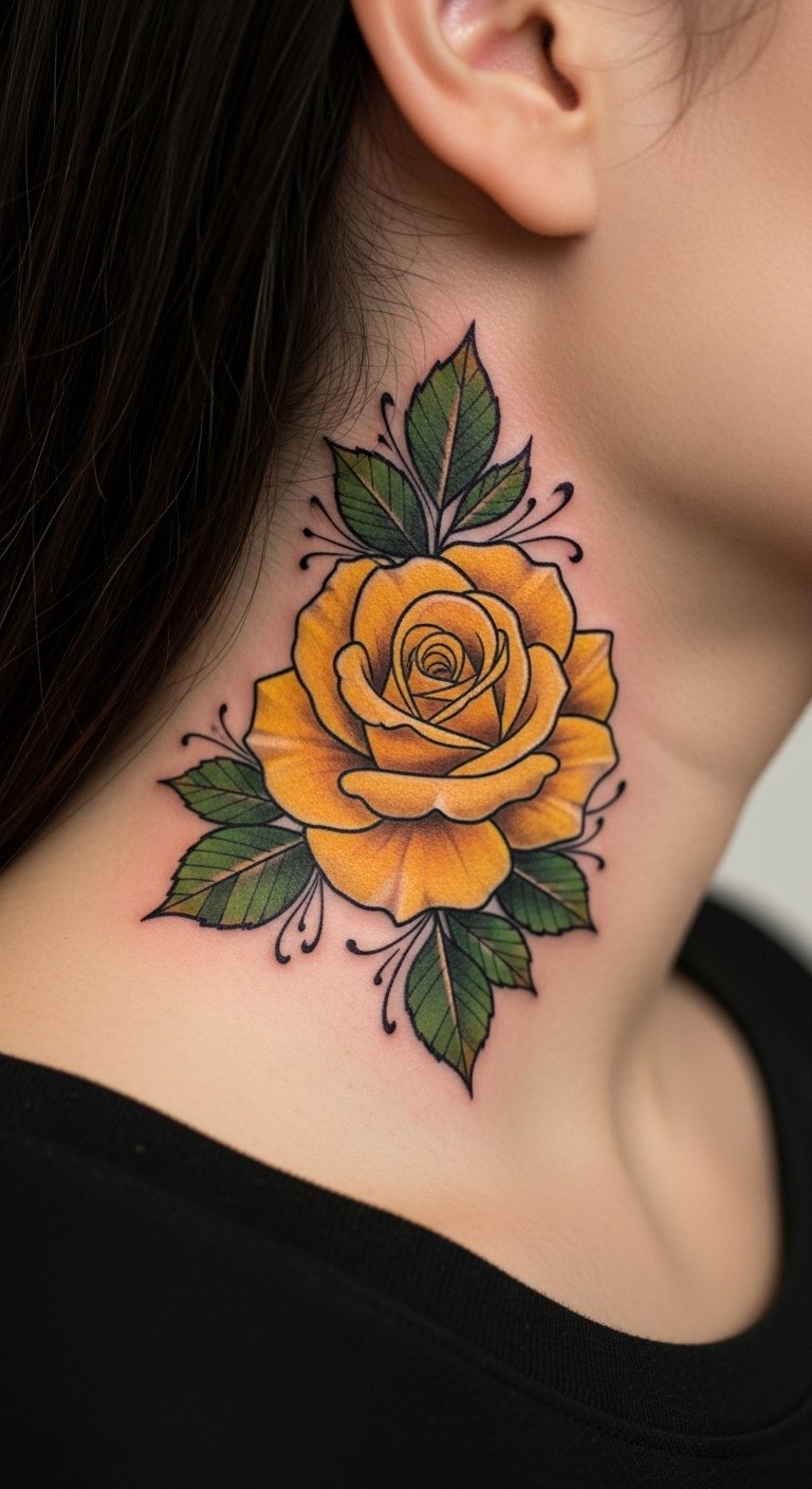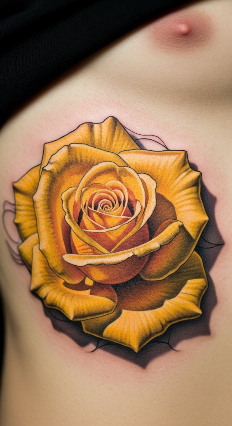 Play with yellow shades for your rose tattoo. Try your thigh for a bold spot. Artists often charge $65 for color work. Test shades with makeup at home. Mix in light yellow for a soft look. It’s customizable and fun. Use phone filters to preview. This keeps it personal. Experiment affordably.