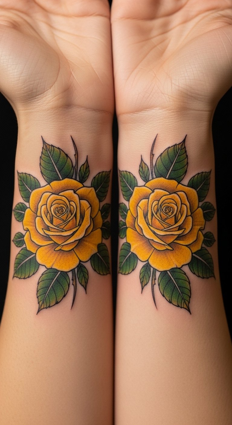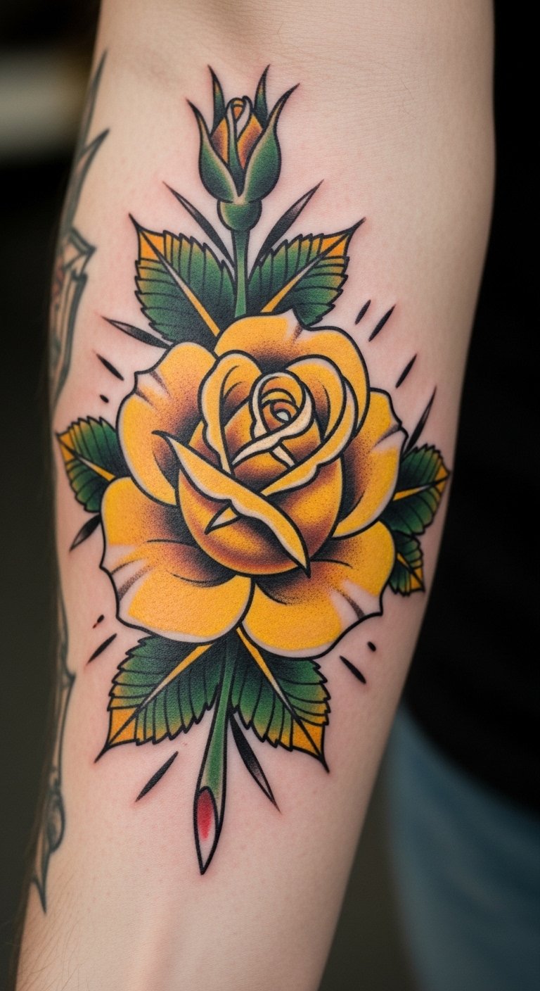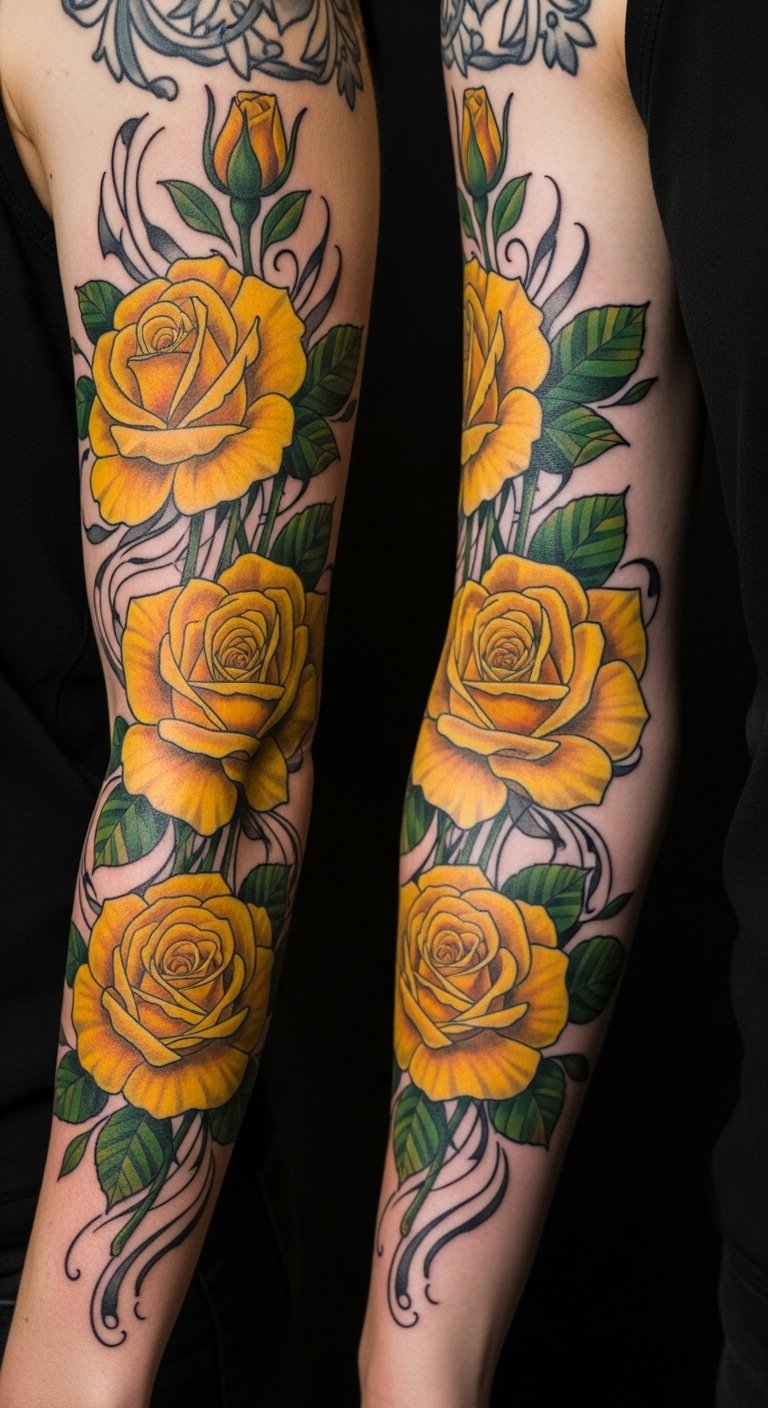 Forearms show off yellow roses easily. Go for clean lines here. Find spots for $80 or less. Trace it on your arm with a marker first. Add details for personality. It’s practical for daily life. Use templates from free sites. This placement works wonders. Try it for visibility.