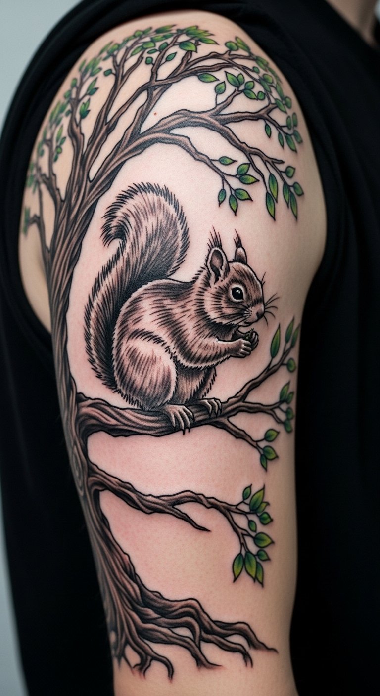 Include Ratatoskr, the messenger squirrel, on your Yggdrasil. It adds a playful story, emphasizing communication and messages.