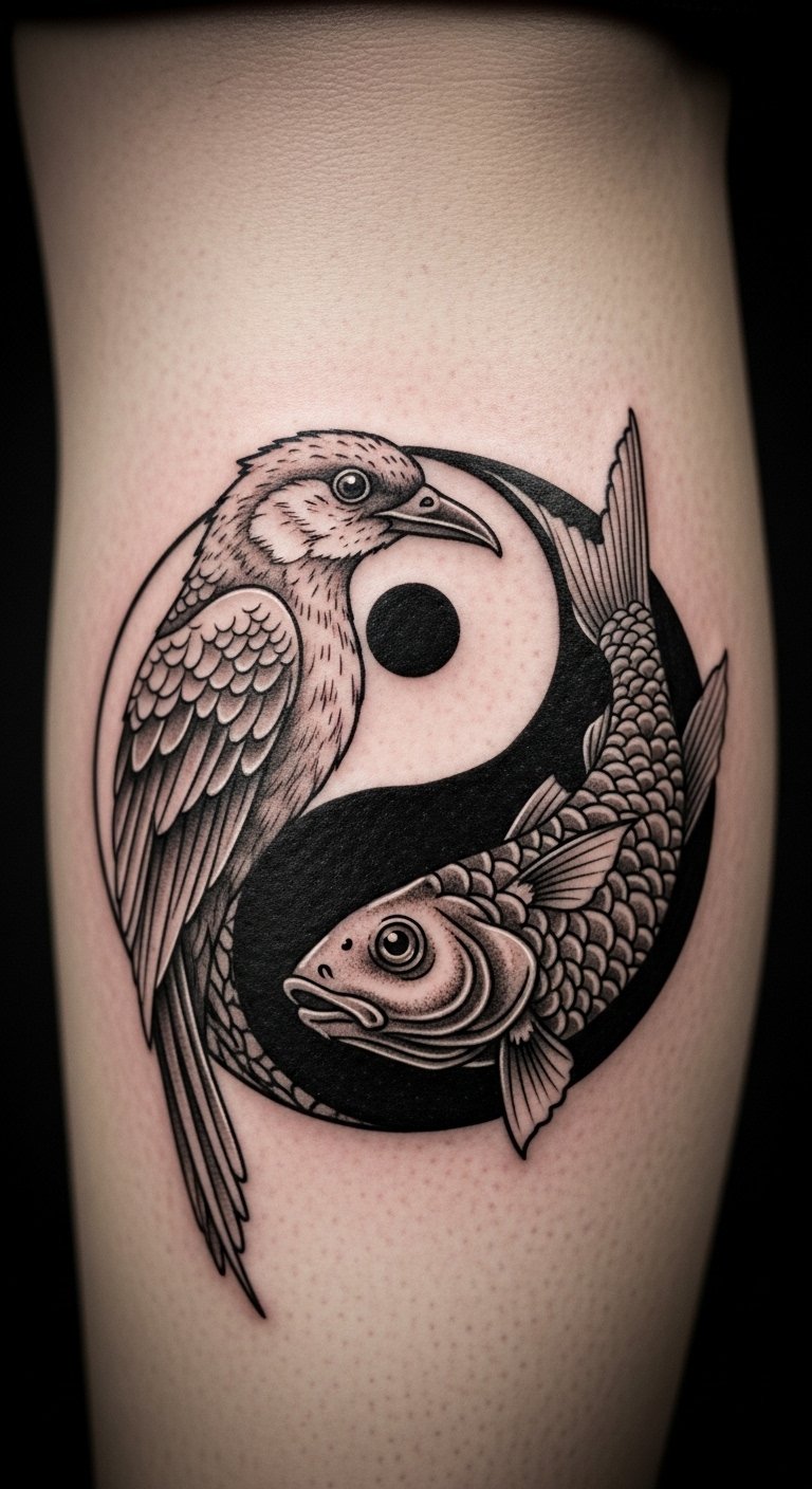 Pair animals in yin yang, like a bird and fish, for spirit vibes.