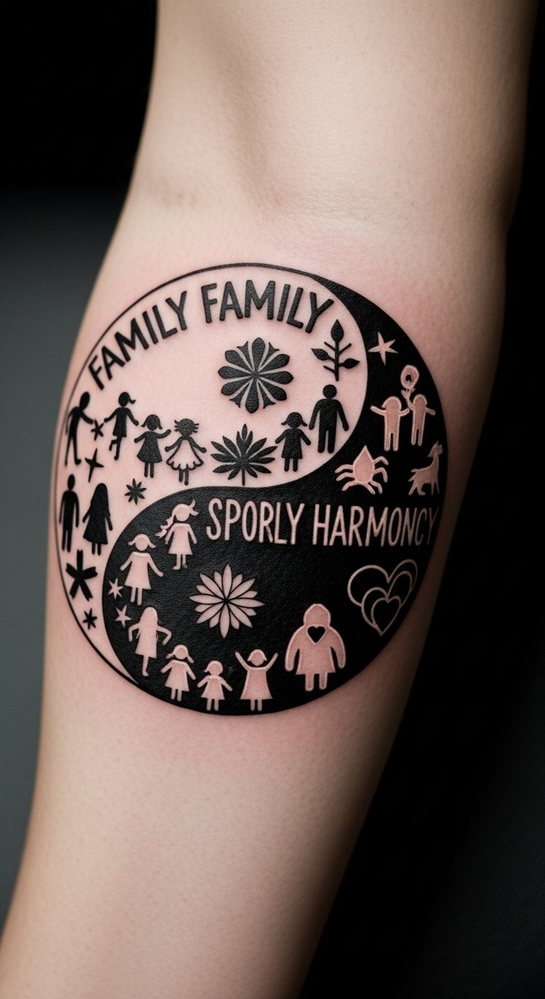 Include family symbols in yin yang for bonds. Like a heart for loved ones.