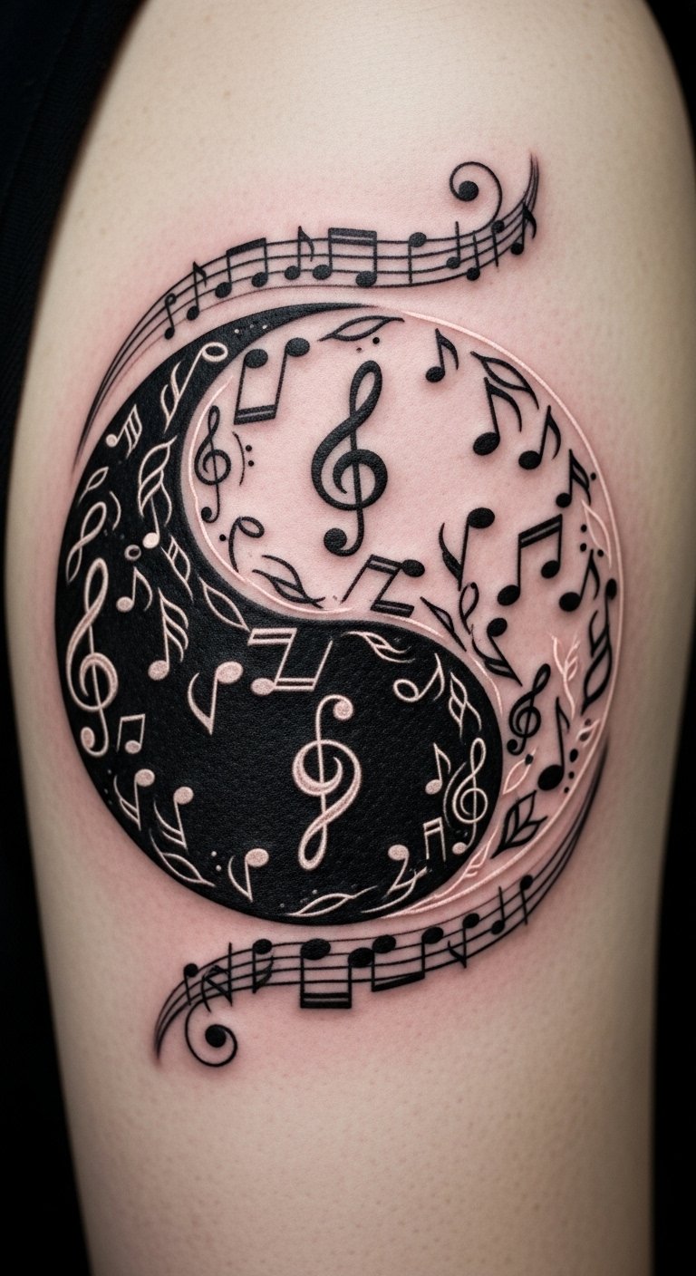 Notes make yin yang musical. Sounds shape the design for rhythm.