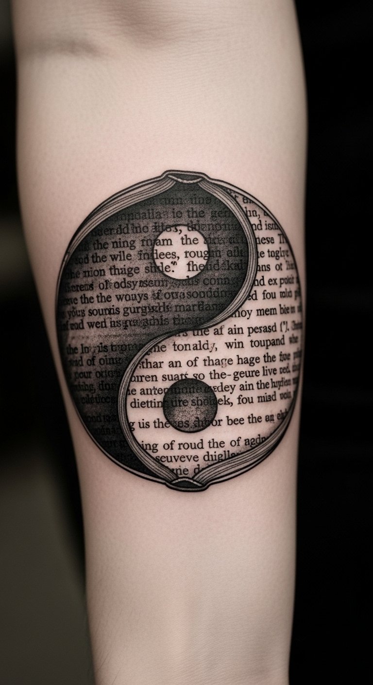 Pages form yin yang for knowledge fans. Book elements create the circle.