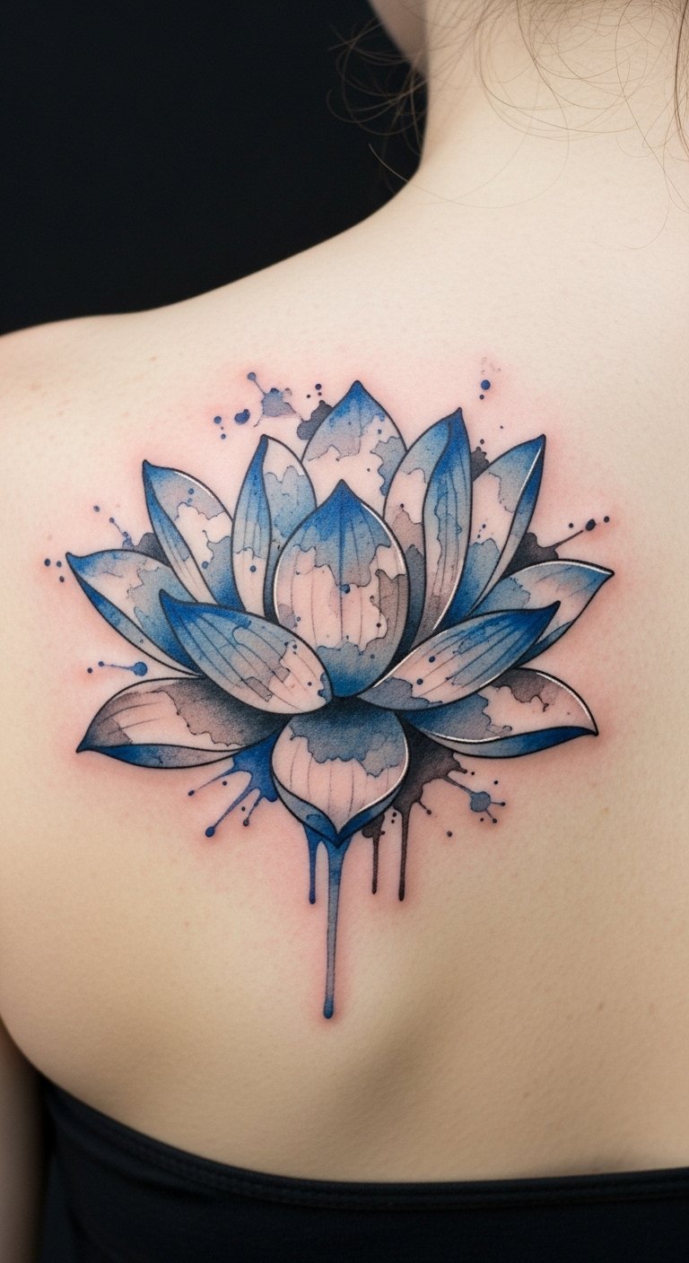 Watercolor lotus adds a soft vibe. It mixes colors for a dreamy look. Try it on your shoulder for art. Experiment with watercolors at home. Look for sales on colored ink. Blend it with other elements. Use paints to test designs. This idea refreshes your spirit. Opt for few colors to save. It’s a creative twist on tradition.