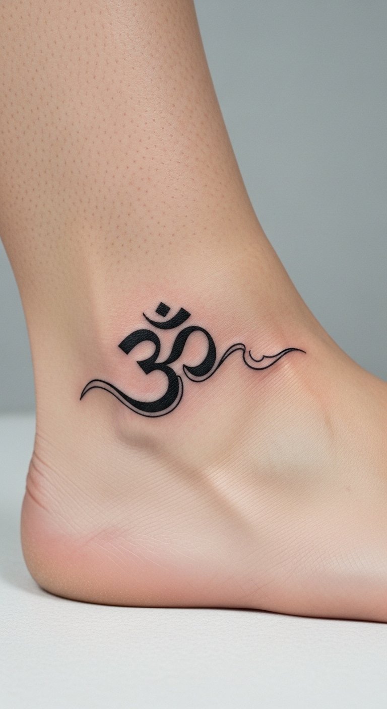Minimalist Om with a wave symbolizes motion. It keeps things sleek and meaningful. Put it on your ankle for subtlety. Sketch with a straight edge. Search for low-price options. Link it to water themes. Try freehand drawing. This idea streamlines your practice. Use one line to save money. It’s a neat personal mark.