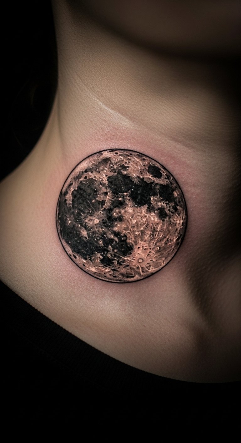 Full moon illuminates your path. It cycles with your energy. Try it on your neck for nights. Trace circles easily. Find moon specials. Add stars around. Use coins for templates. This design lights your way. Opt for one shape to cut costs. It’s a cyclic symbol.