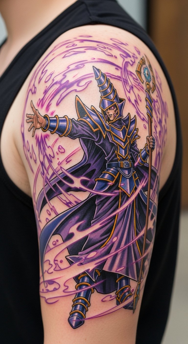 Picture a tattoo of Yugi’s Dark Magician ready for battle. Start simple with a sketch on paper. Use online templates to trace the design. Pick a spot like your arm for easy viewing. Go for black ink to keep costs low at around $50 for a small piece. Add personal touches, like stars around the magician, using free drawing apps. This design fits everyday wear. Break it down: draw the figure first, then the cape. Try a temporary tattoo kit for $10 to test it. Keep colors bold but simple. Focus on clean lines for a sharp look. You’ll have a tattoo that sparks talks at gatherings.